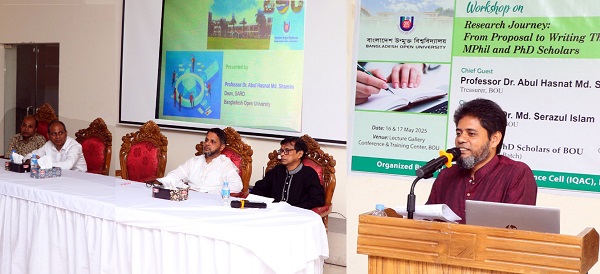 বাউবিতে এমফিল ও পিএইচডি গবেষকদের জন্য “গবেষণার যাত্রা: প্রস্তাবনা থেকে থিসিস লেখালেখি”বিষয়ক কর্মশালার উদ্বোধন ( May 17, 2025 )